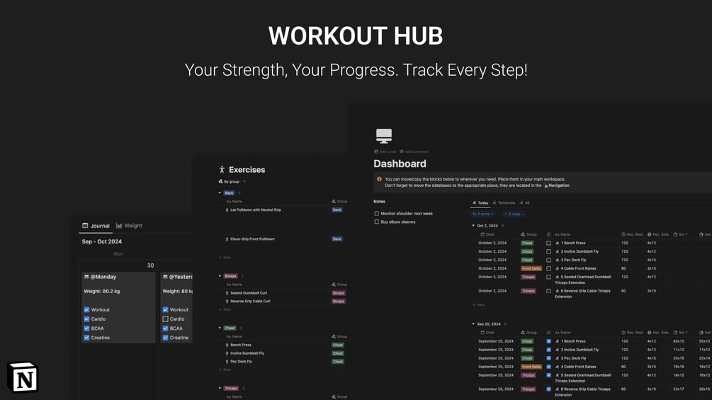 Easily track and manage your workouts, progress, and fitness habits in one streamlined and efficient system.